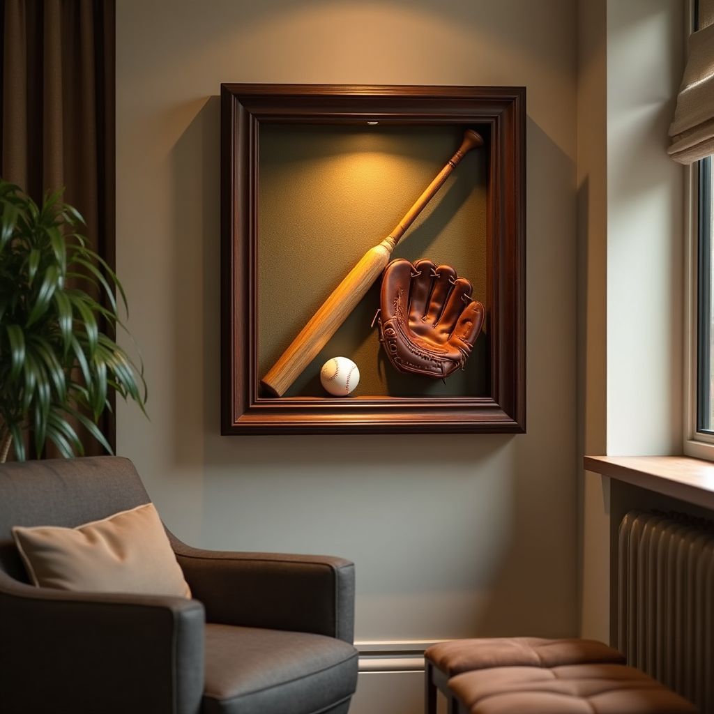 Specialized framing service for showcasing three-dimensional collectibles, sports memorabilia, or cherished personal items, preserving them beautifully.